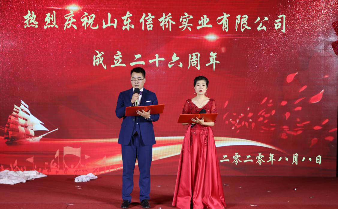2020年8月8日,山東信橋?qū)崢I(yè)有限公司二十六周年慶典在泰安帝苑酒店隆重舉行。各路榜樣精英、以及二十六年來給予信橋厚愛的各級領(lǐng)導、各位同仁、新老朋友在這里歡聚一堂,與為公司付出辛勤勞動的全體員工一起,分享屬于大家的光榮與快樂!